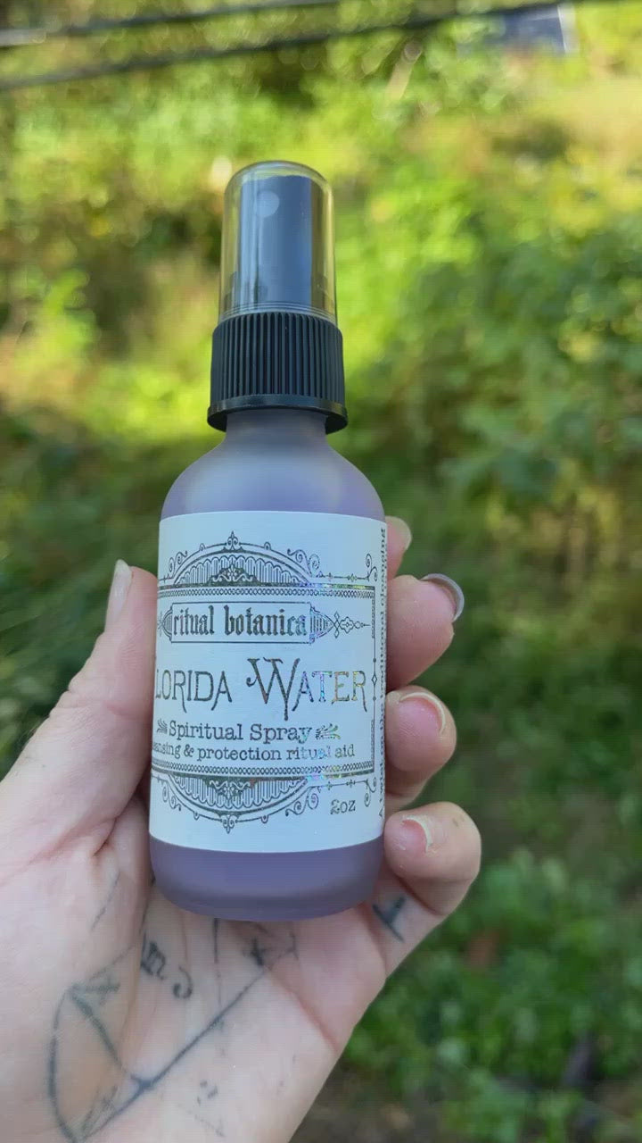 Just as Florida water was America's take on eau de cologne, this Florida Water is Ritual Botanica's Appalachian herbal twist on these popular sprays. Instead of solely Essential Oils, this blend is crafted from hydrosols and extracts, still remaining true to the strong floral & citrus notes which are staples to Florida Water. Lavender remains as a core ingredients with it's panacea of benefits. Lemon Balm and Sassafras leaves make up the citrus notes while offering uplifting and cleansing properties. For an extra cleansing boost Poke berries are blended in. Angelica archangelica offers a door to connect with higher energies & vibrations. Bergamot peel is replaced with Bee Balm which offers assistance with releasing emotions and balancing the blend as well as harmonizing your own being. Lastly Pea Flowers offers the sweetness of home, allowing us to remain grounded while doing our work. The color of this Florida Water is one that resonates with our higher selves--our evolved chakras in a sense.